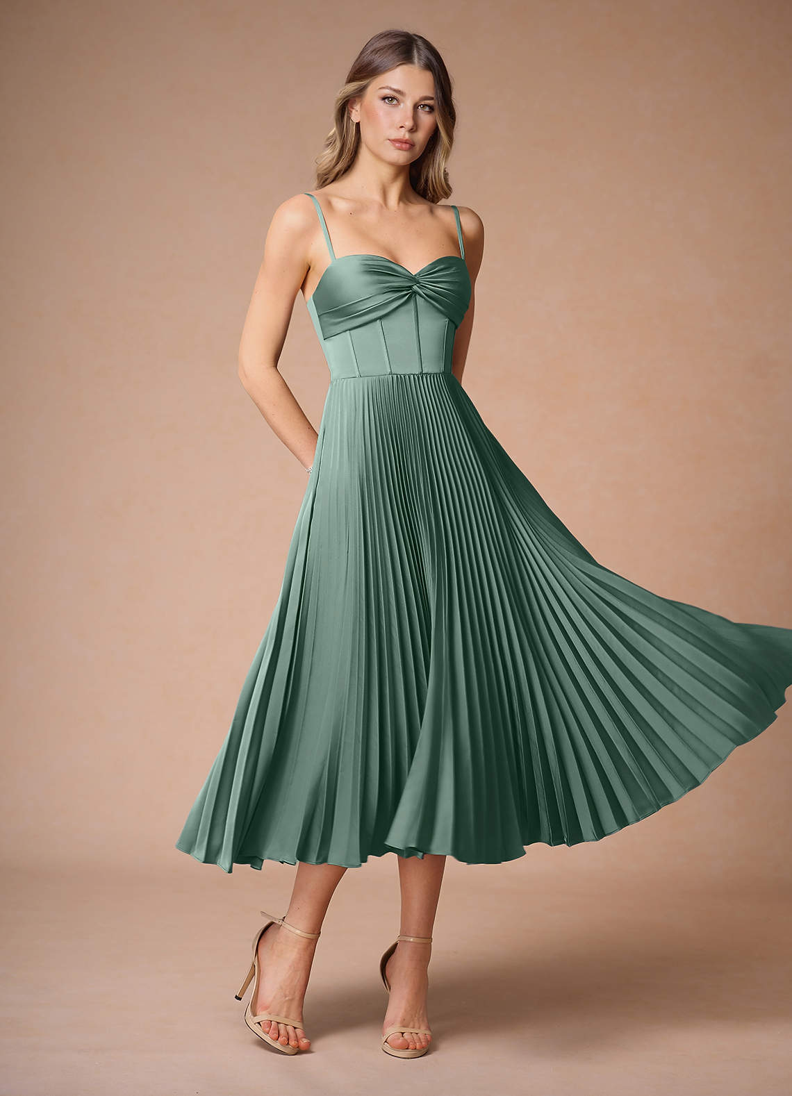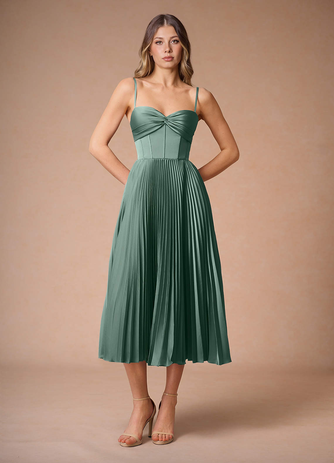 Léna Eucalyptus Pleated Midi Dress Dress