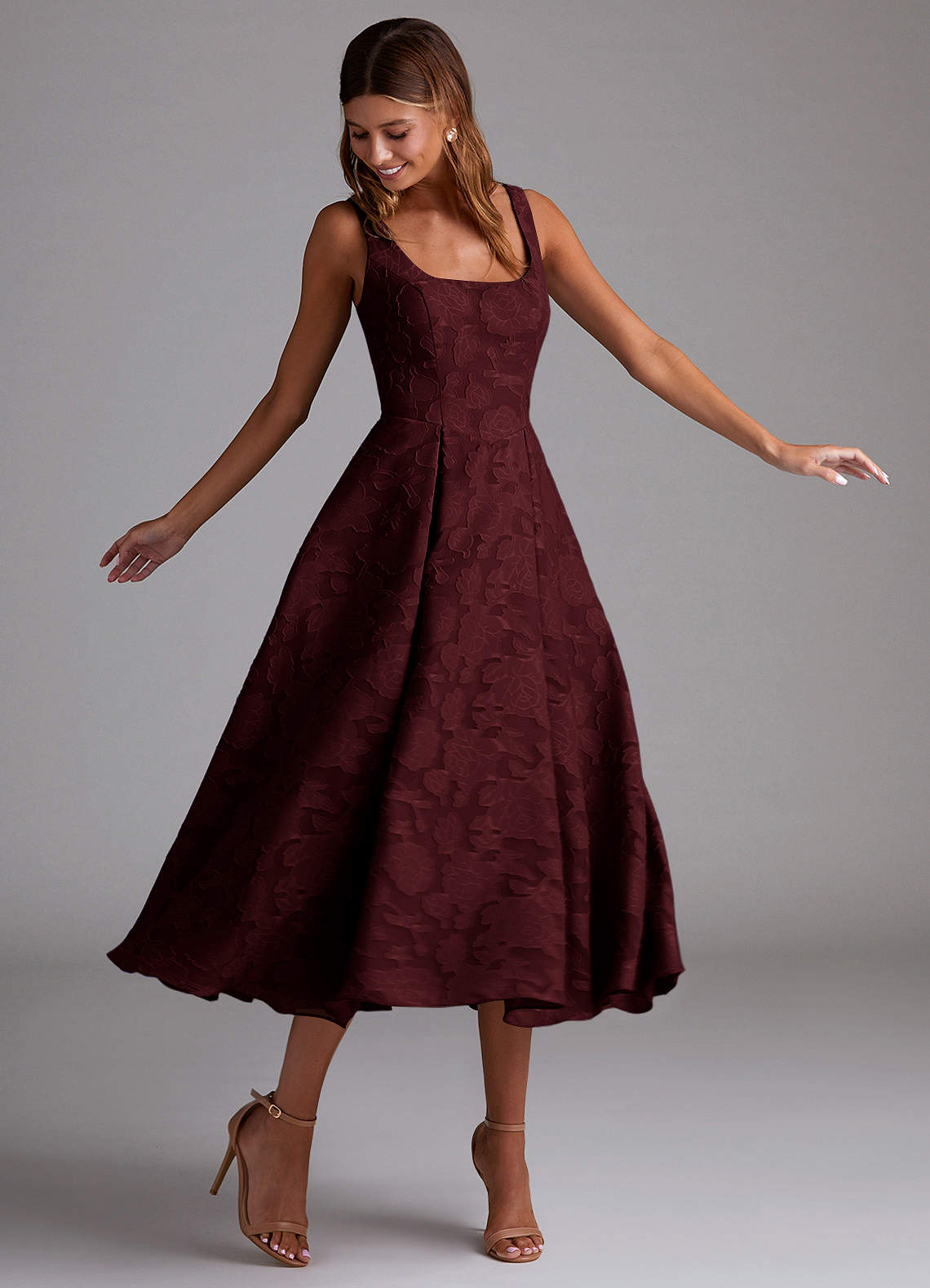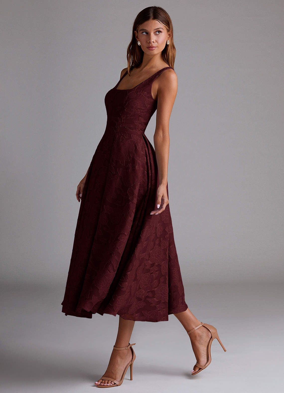 Amalie Wine A-Line Midi Dress Dress