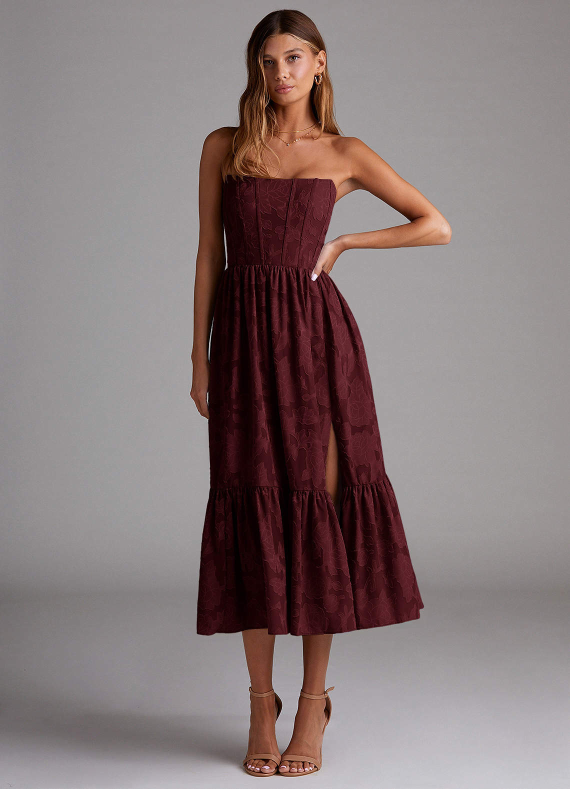 Delphina Wine Lace-Up Back Midi Dress Dress