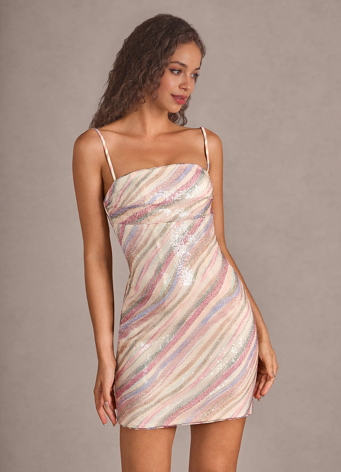 Beloria Pink Rainbow Sequin Mini Dress Dress