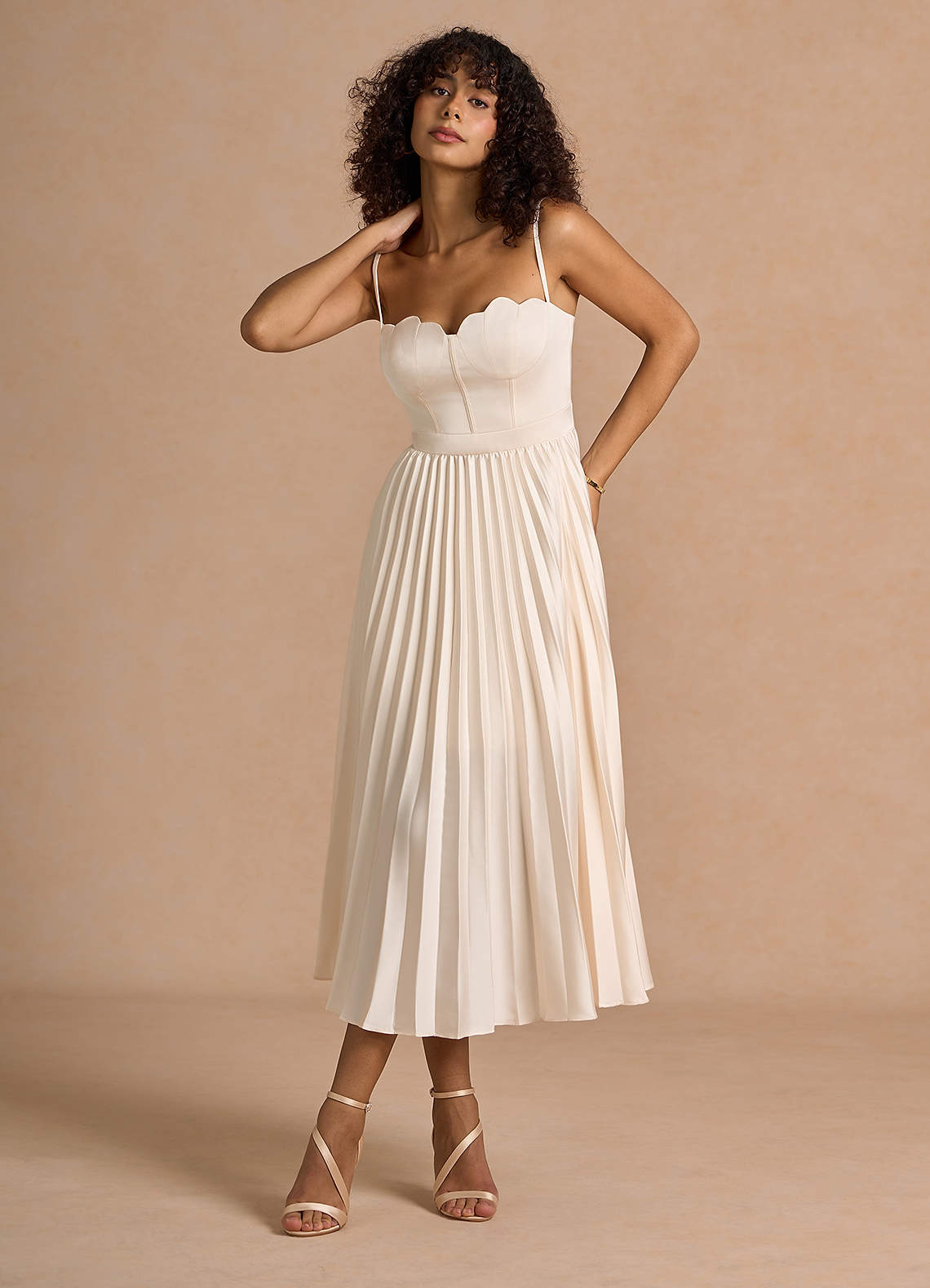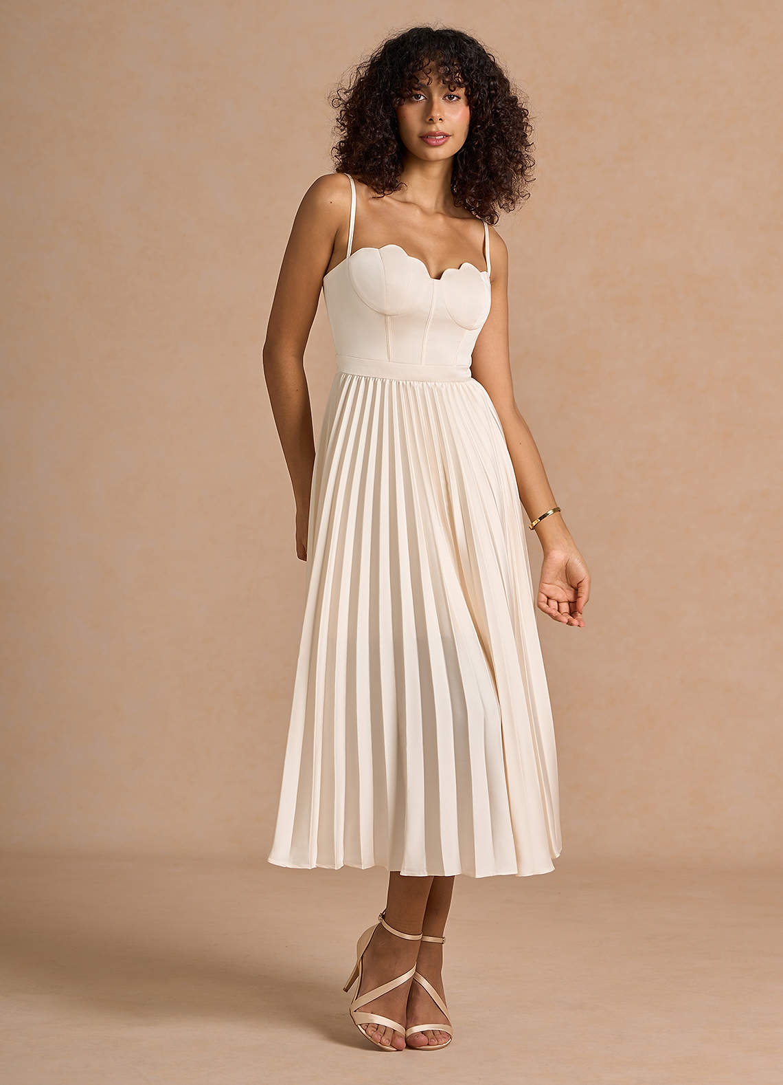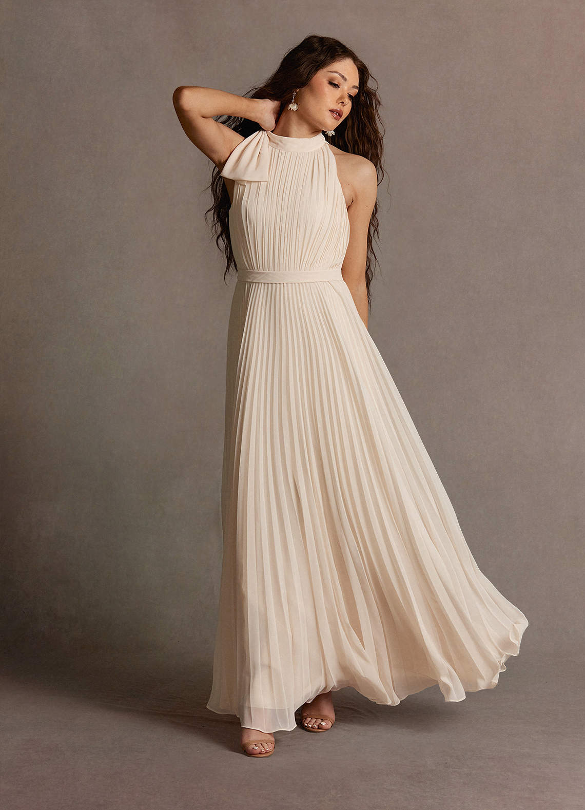 Michaela Cream Pleated Maxi Dress Dress