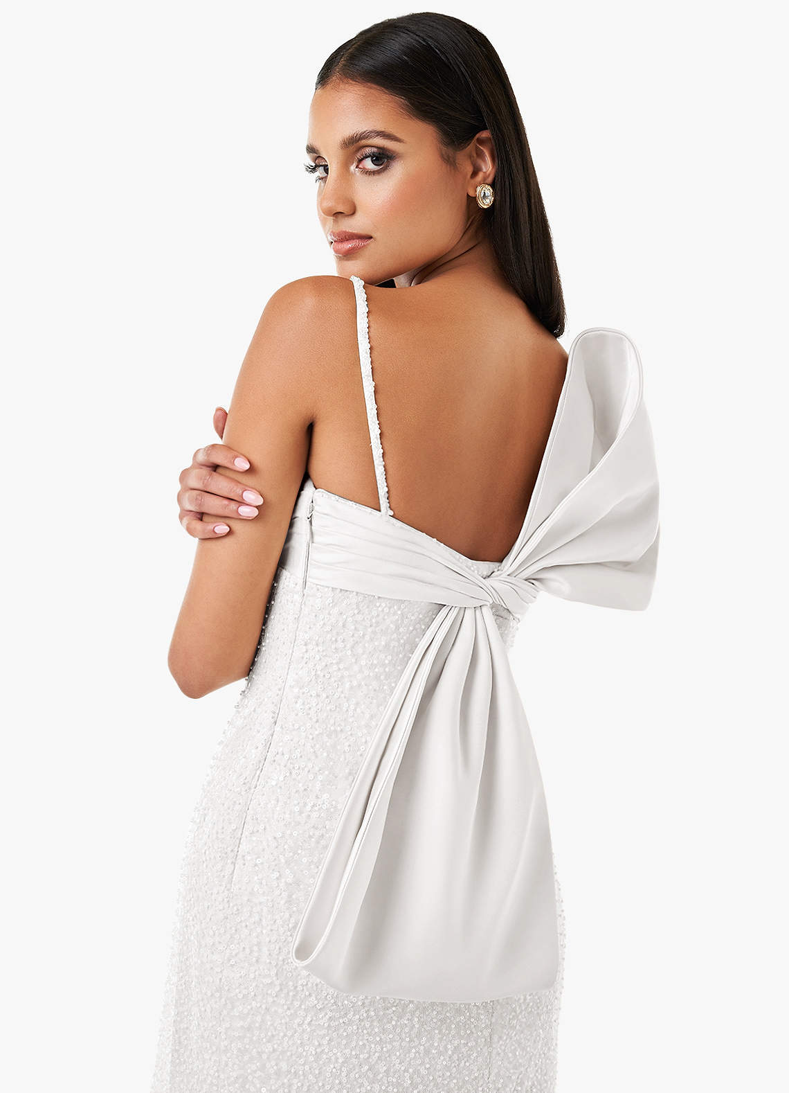Serena White Beaded Bow Mini Dress Dress
