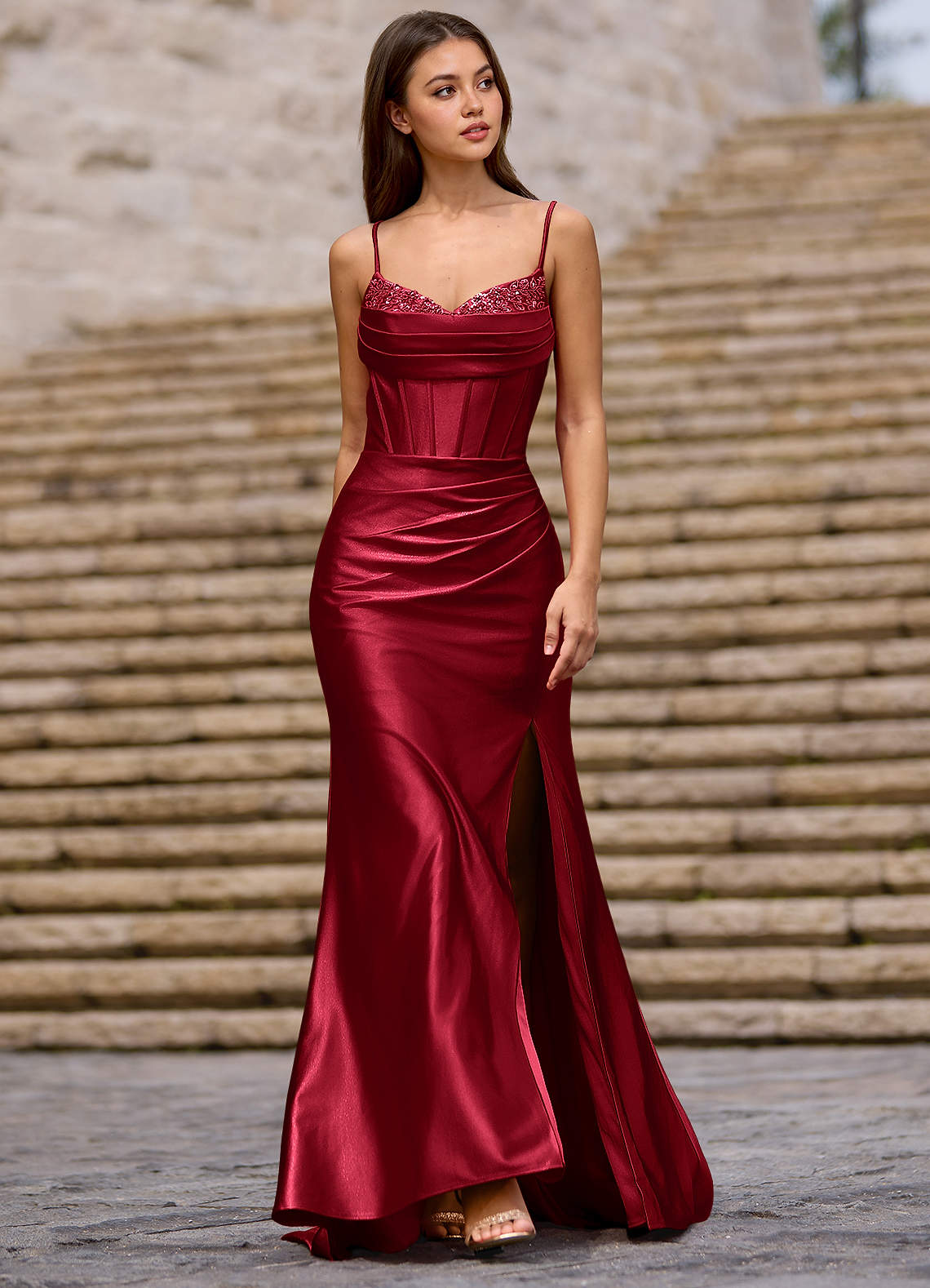 Glow Burgundy Silk-Like Satin Prom Dress Dress