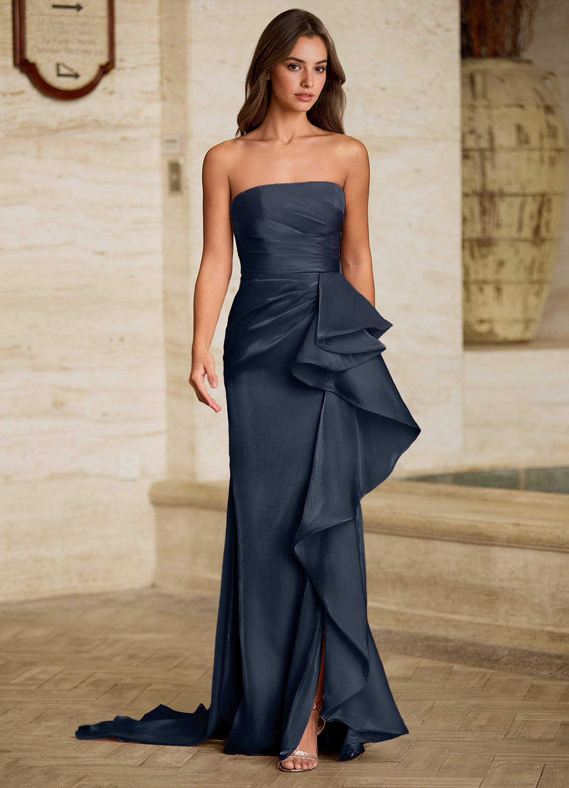 Cressidia Navy Strapless Gown Dress