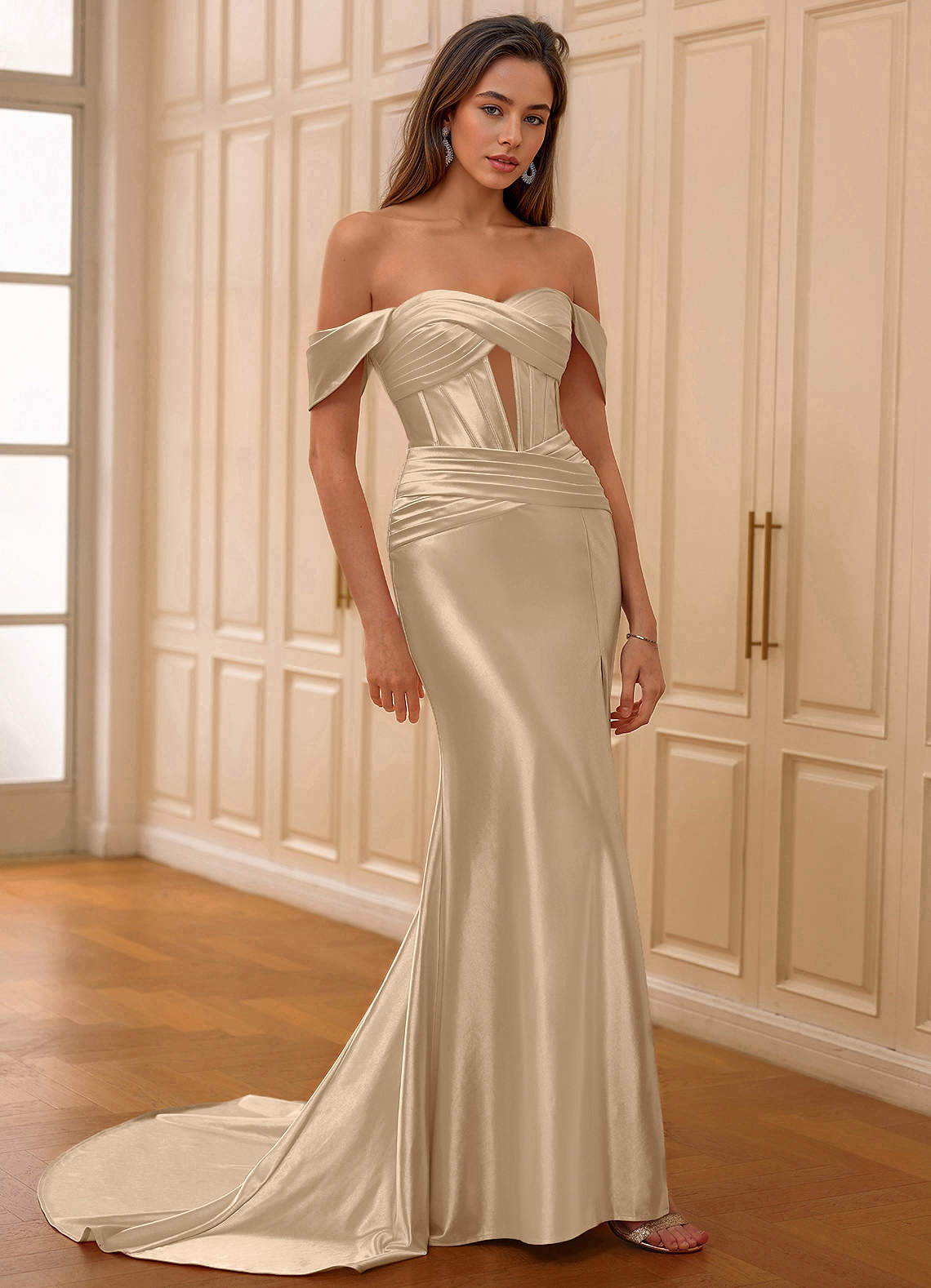 Silora Champagne Short Sleeve Mermaid Prom Dress Dress