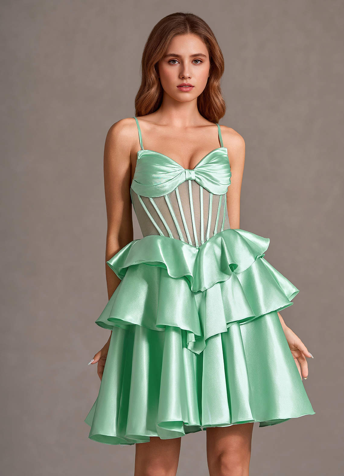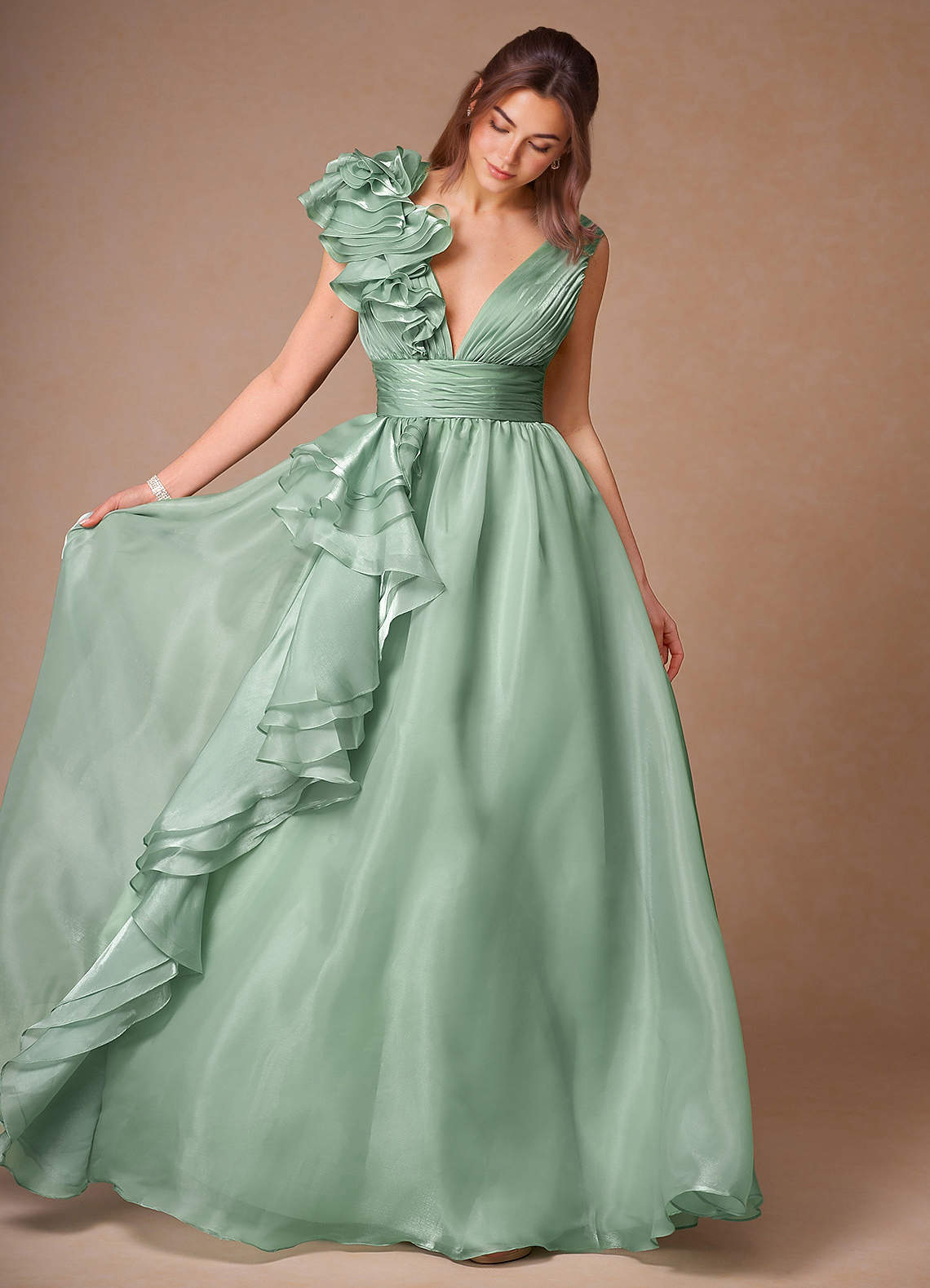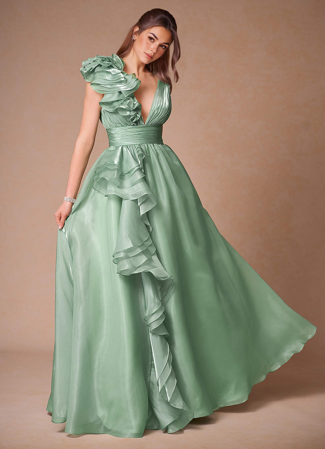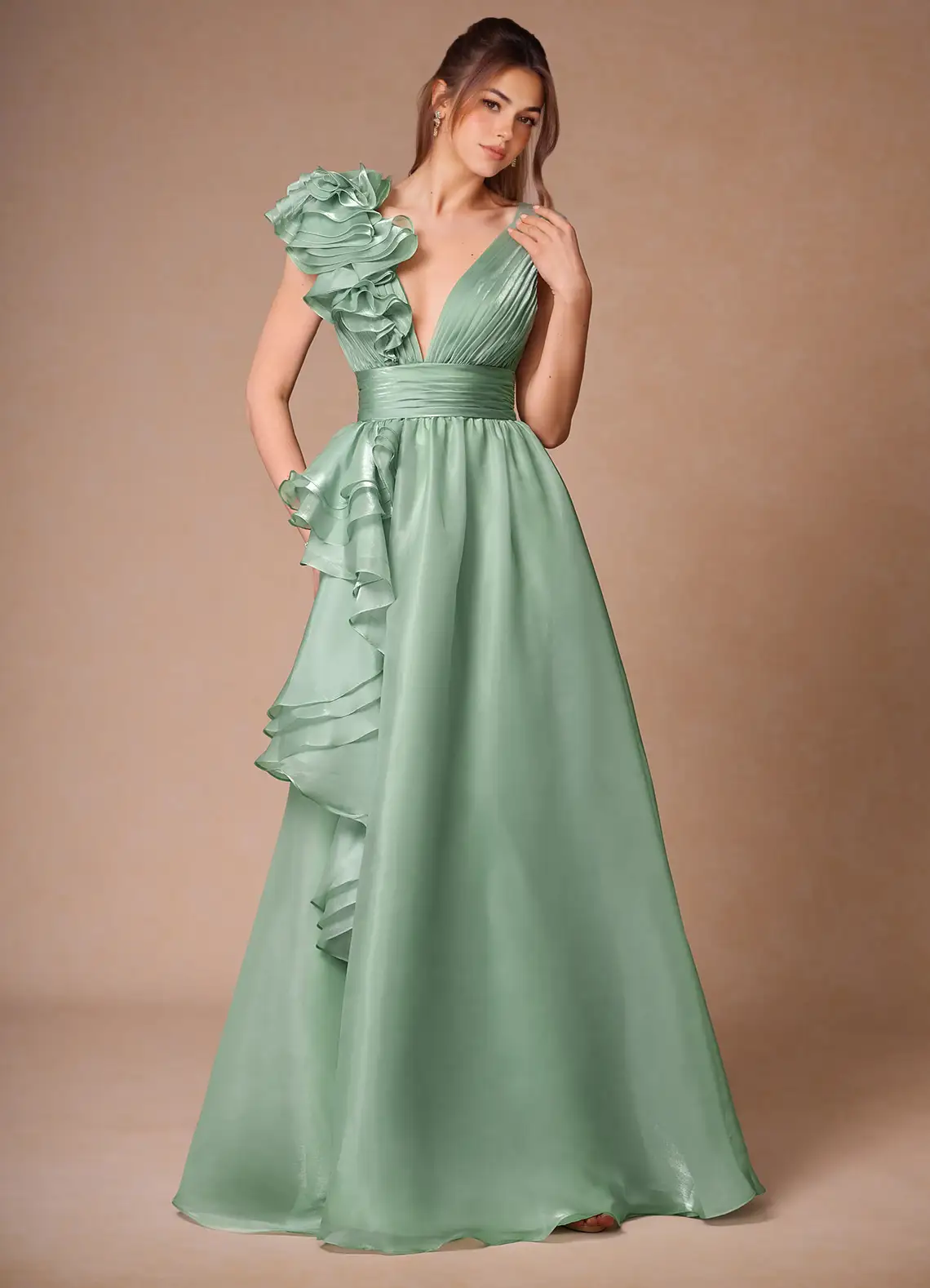 Vespera Sage Ruffles Gown Dress