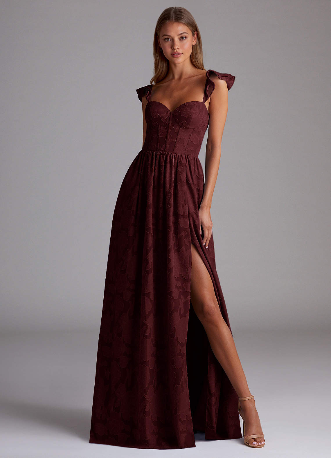 Denisse Wine Corset Maxi Prom Dress Dress