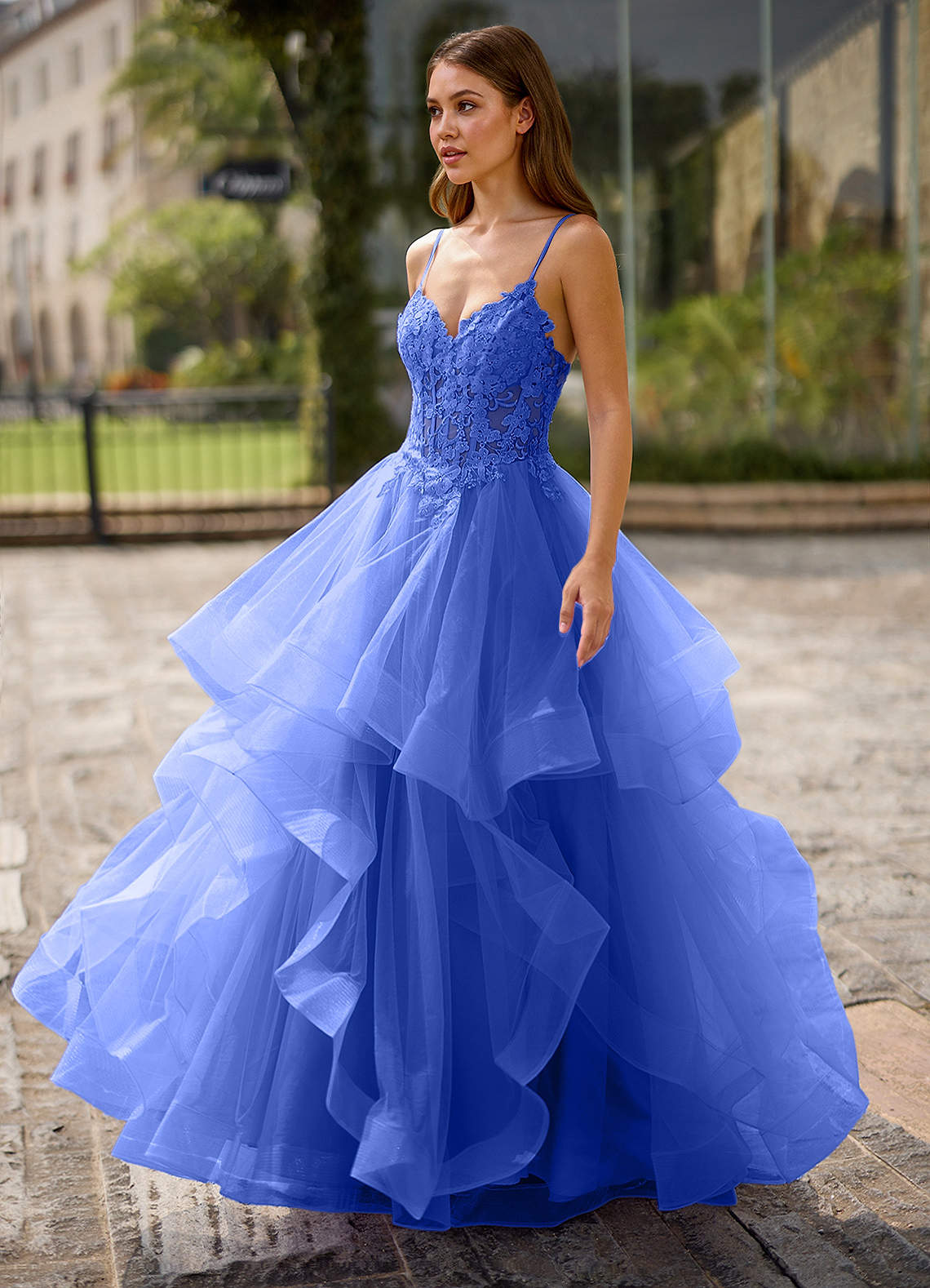 Spitze Royal Blue Sheer Lace Prom Dress Dress