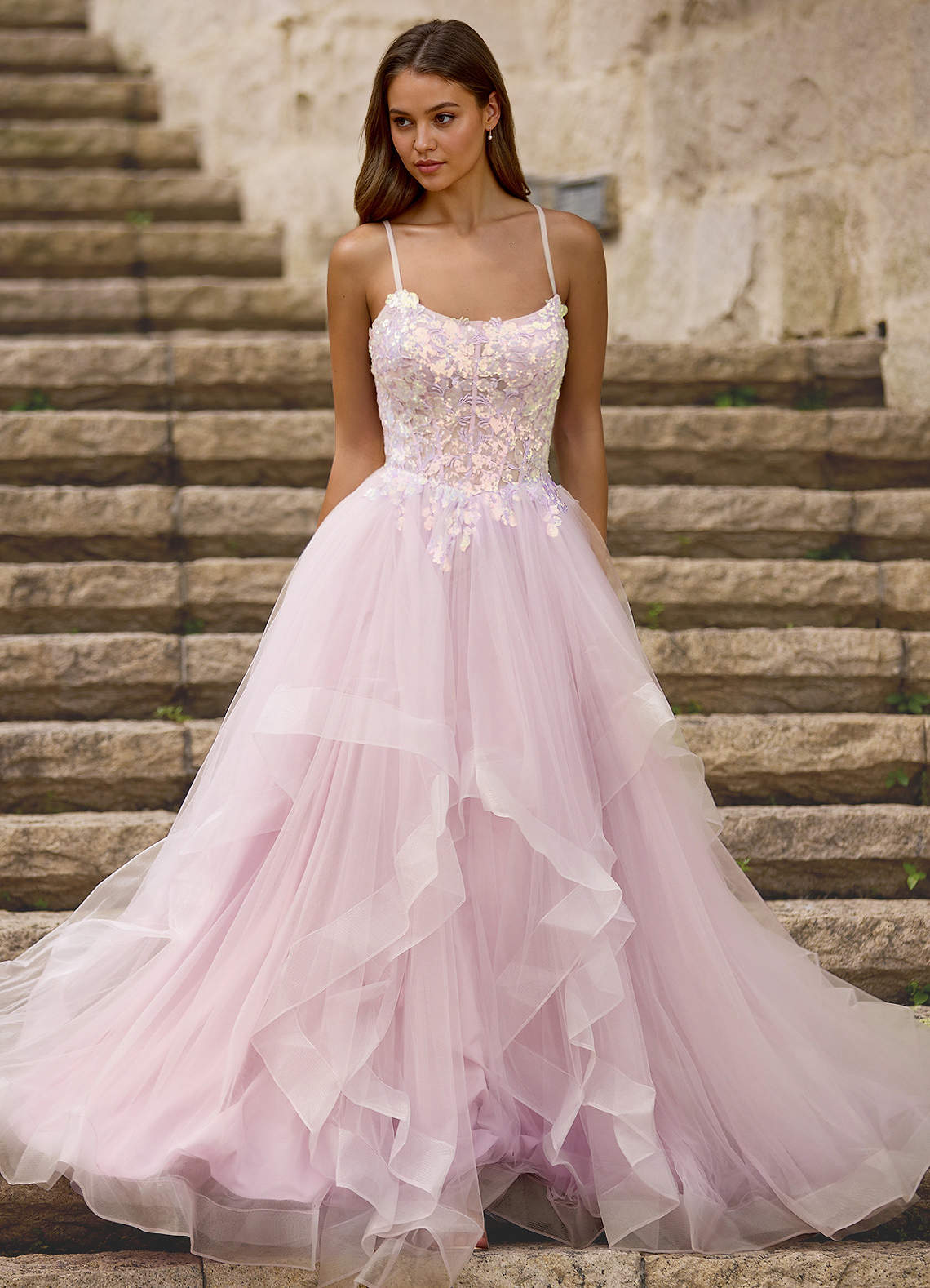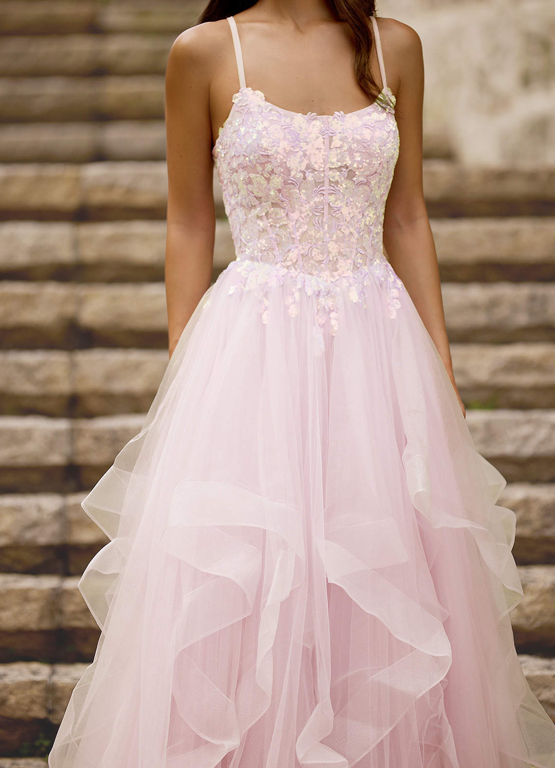 Mosaic Pink Ruffle Prom Dress Dress