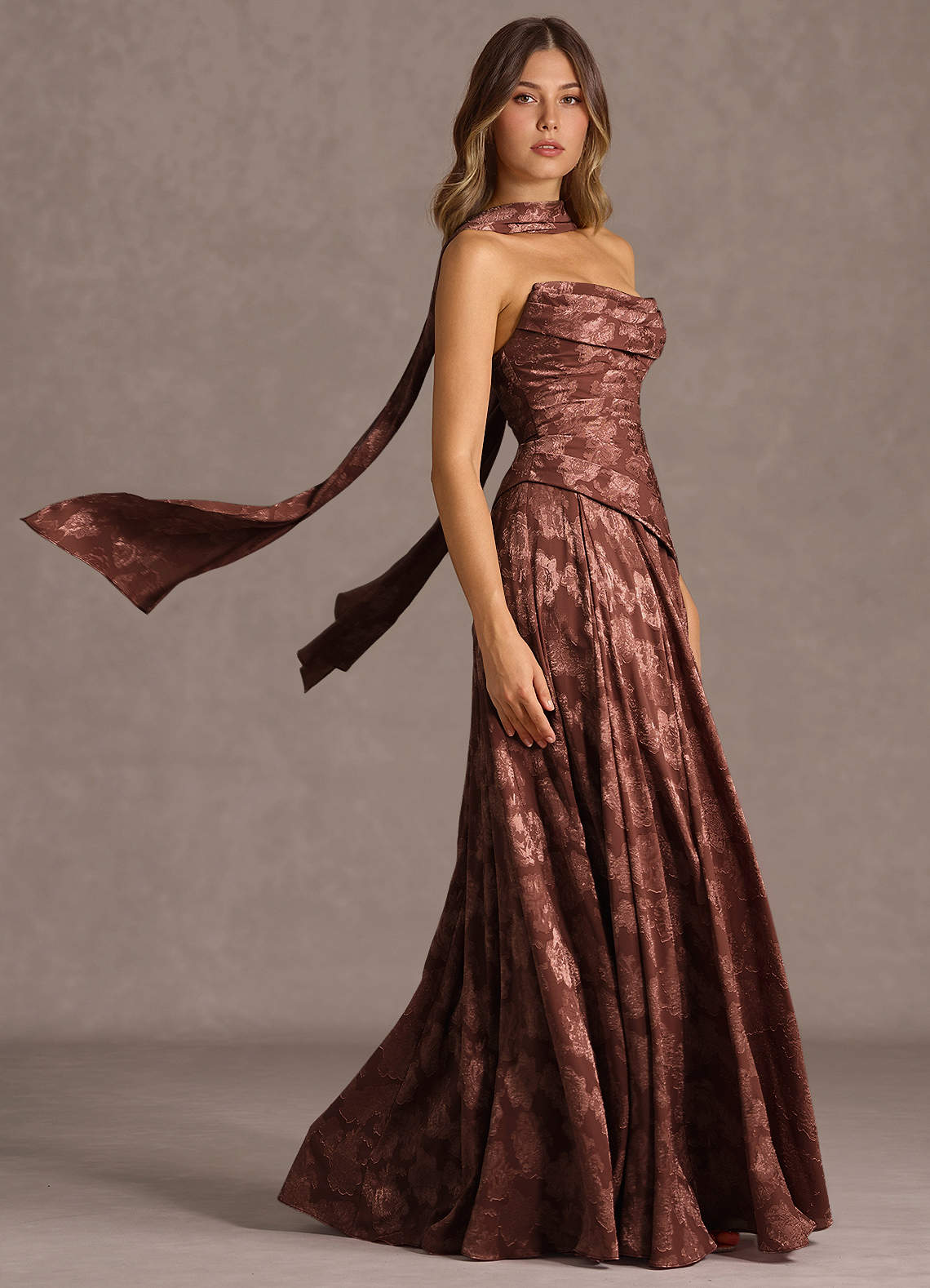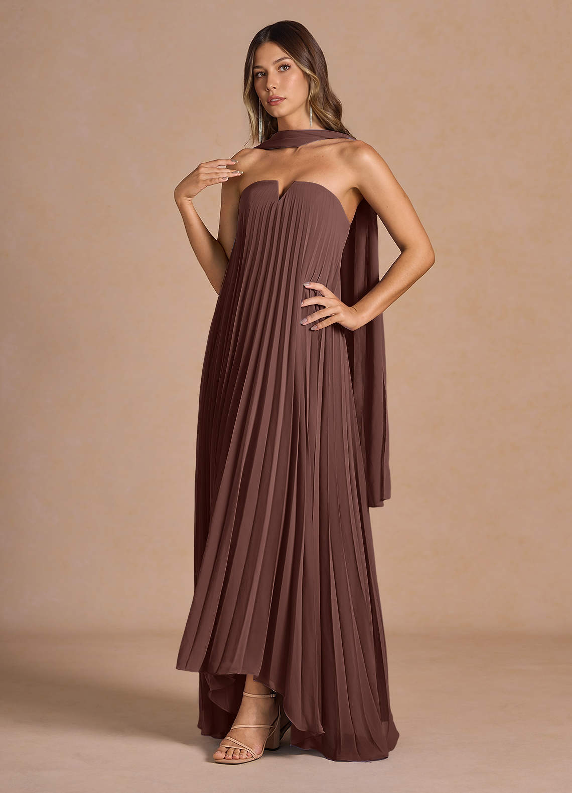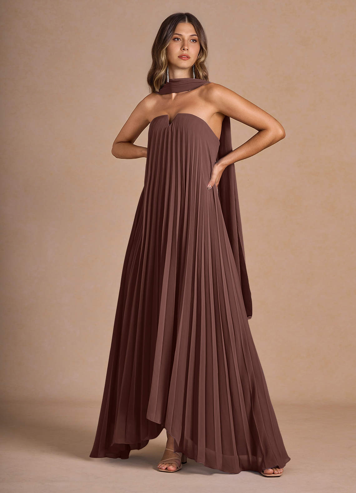 Nahla Mocha Coco Allover Pleated Maxi Dress Dress