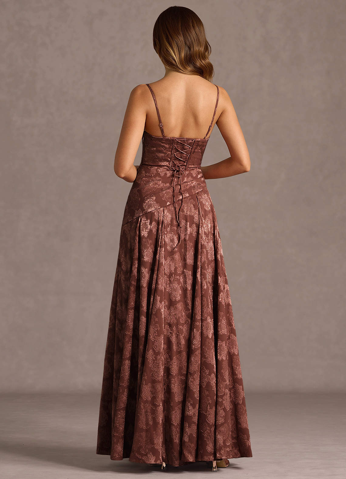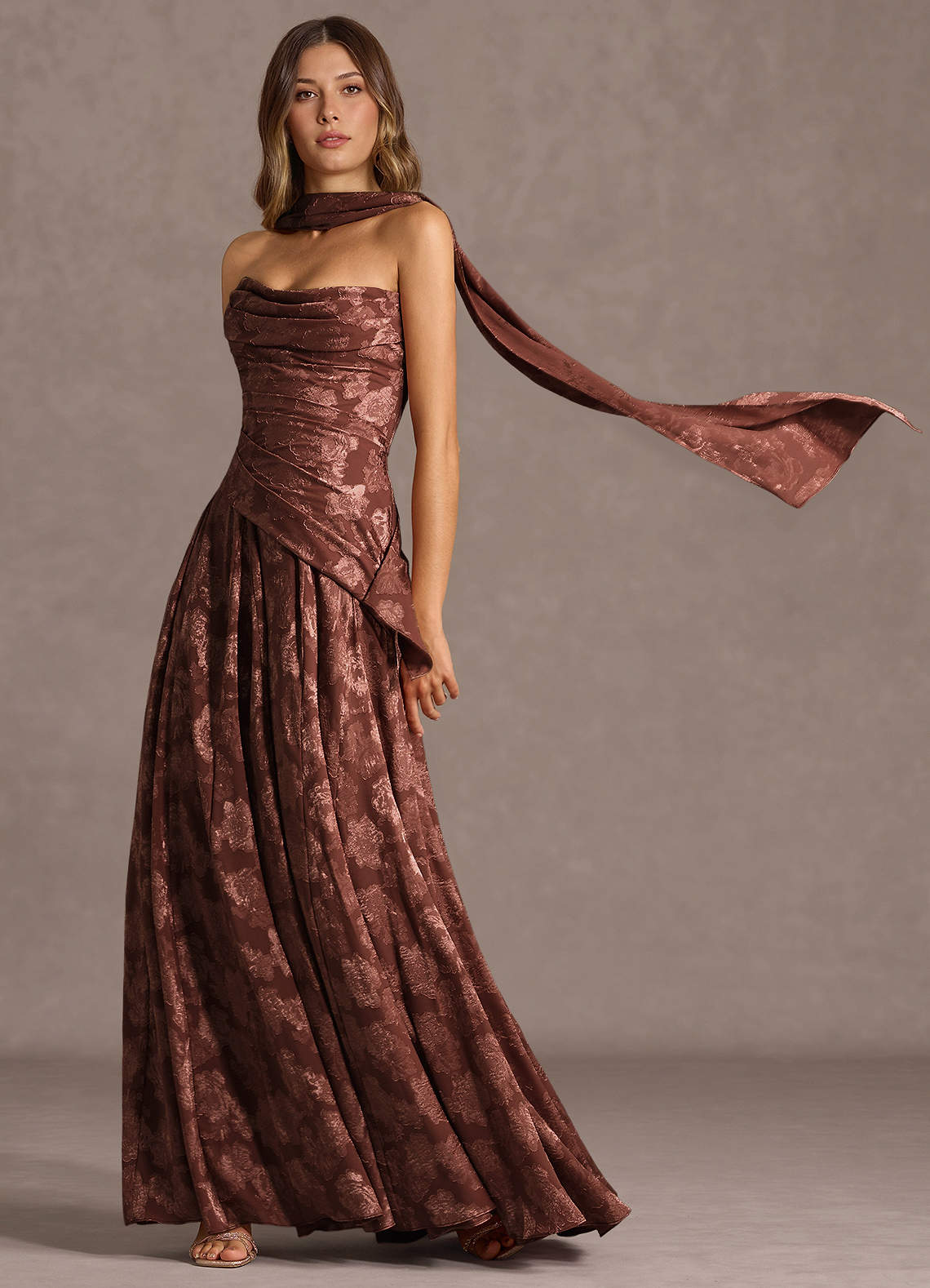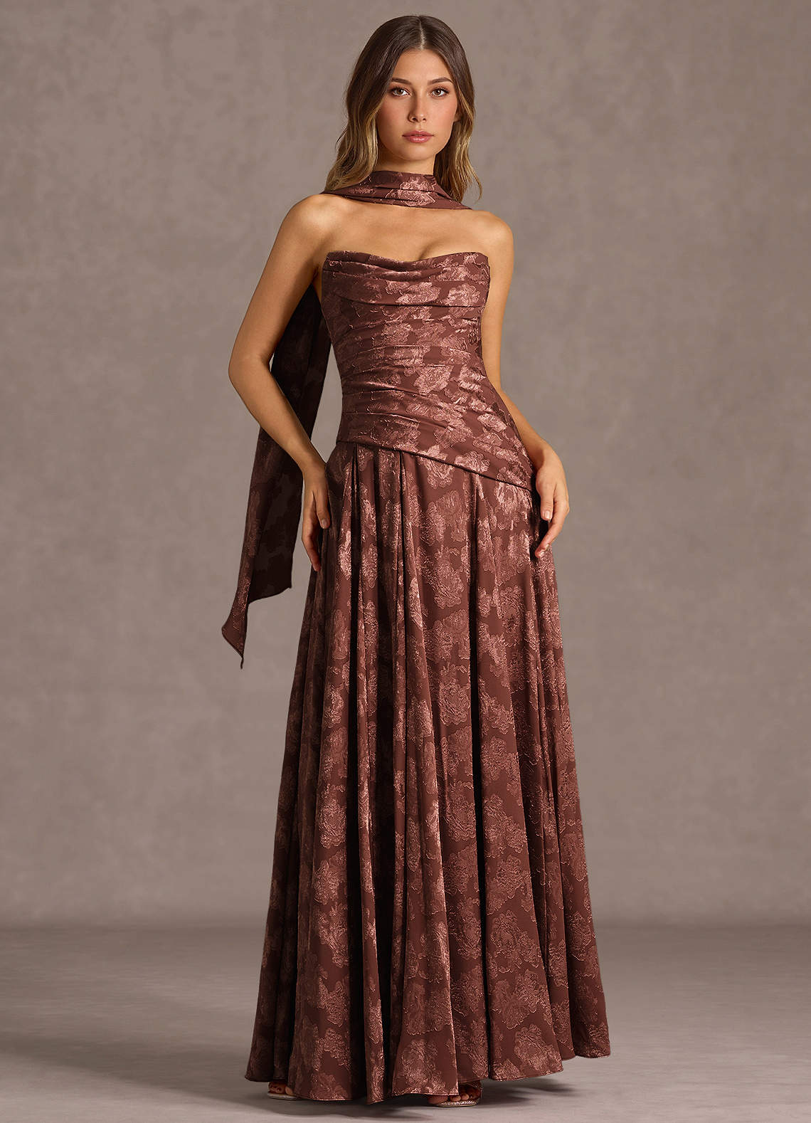 Nahla Mocha Coco Allover Pleated Maxi Dress Dress