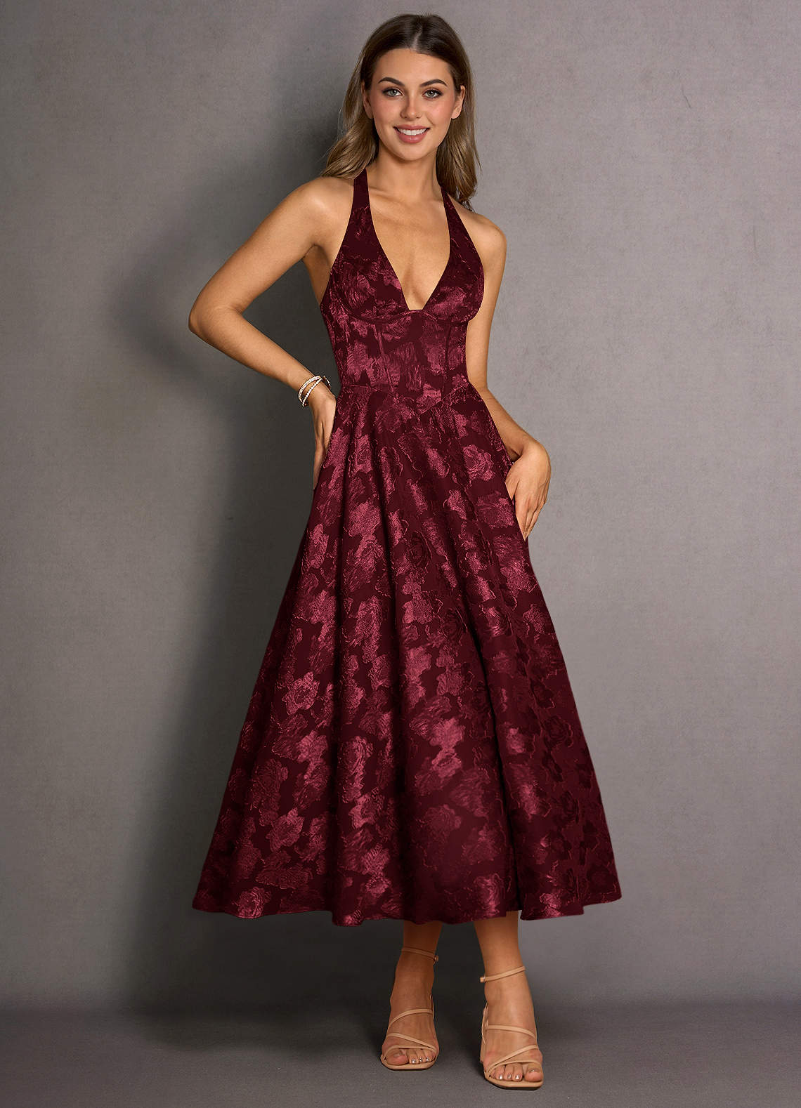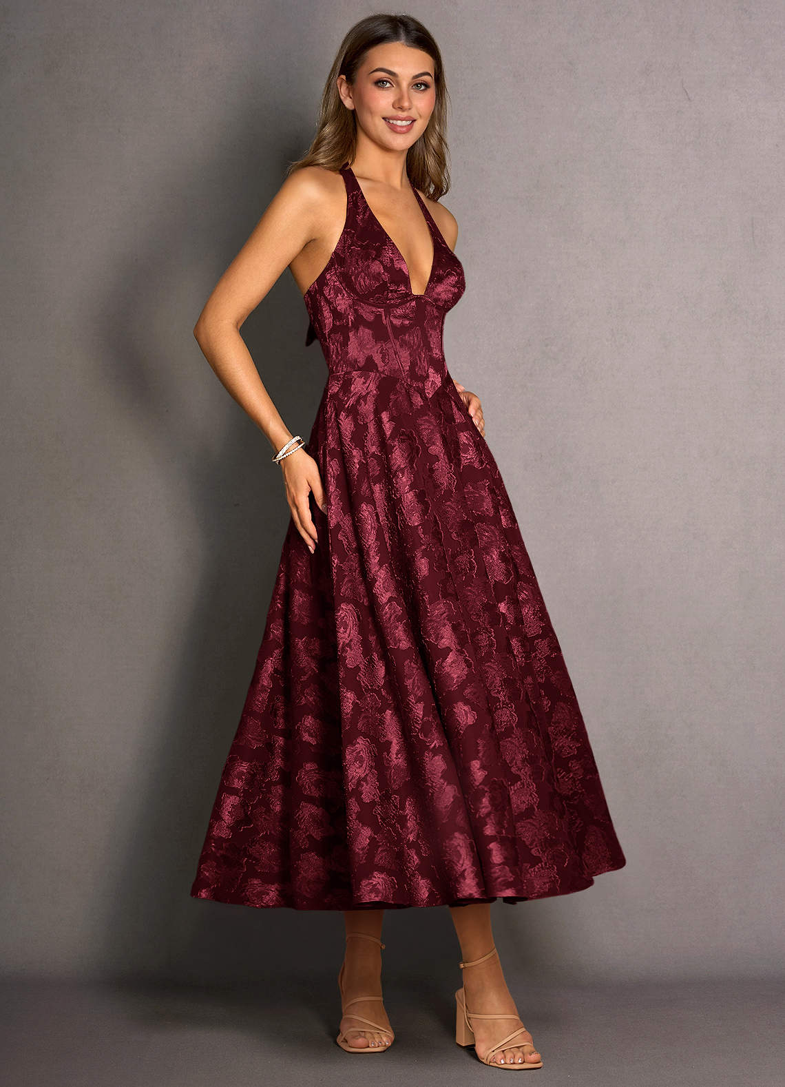 Isabeau Wine Midi Dress Dress