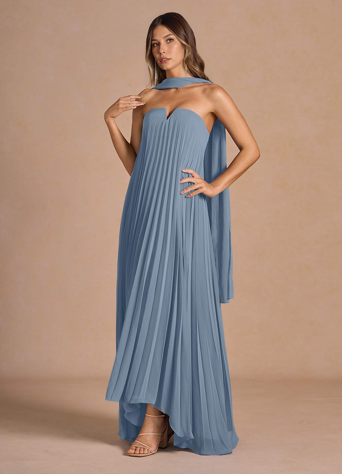 Nahla Powder Blue Allover Pleated Maxi Dress Dress
